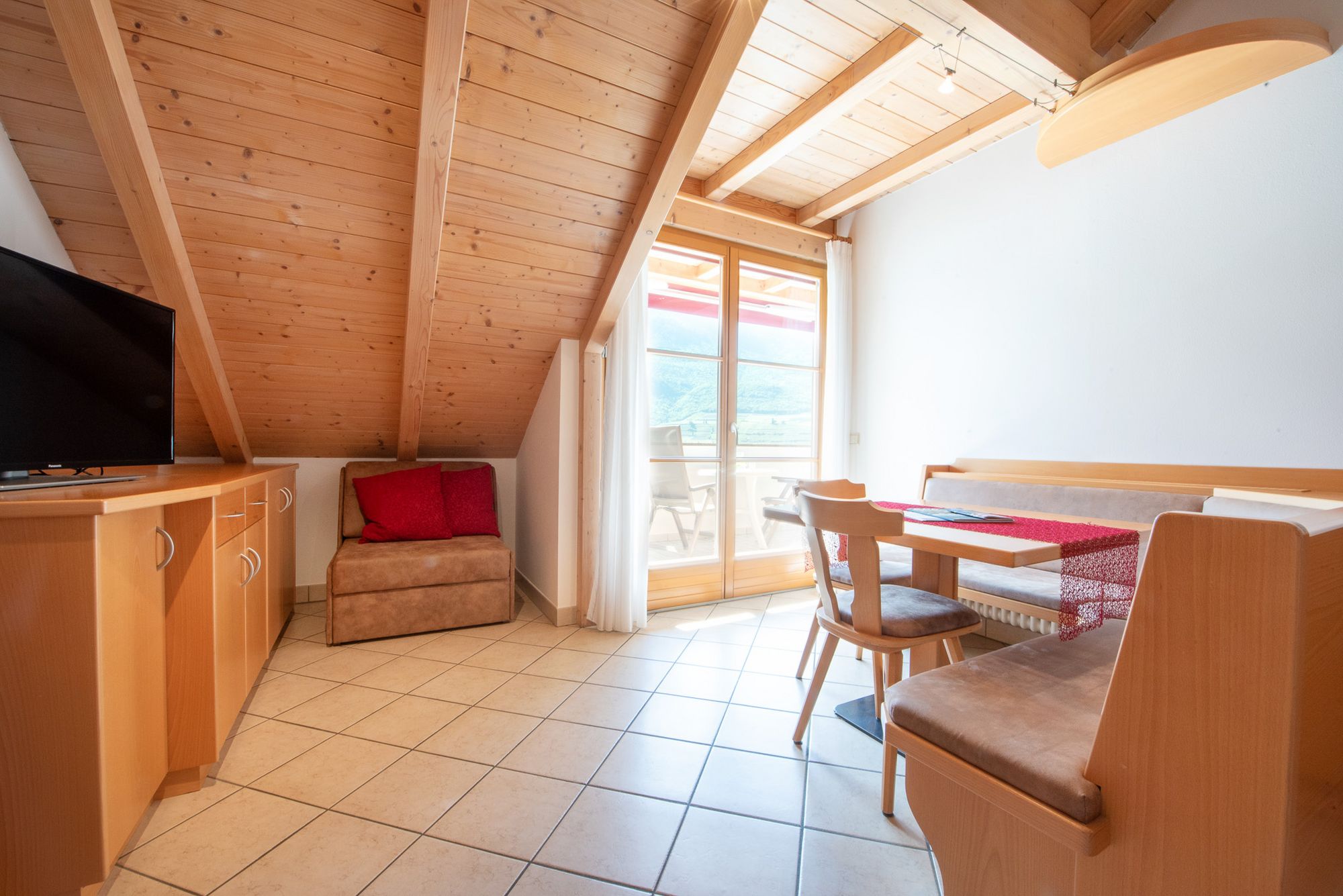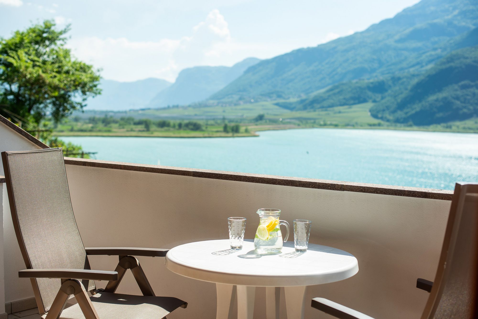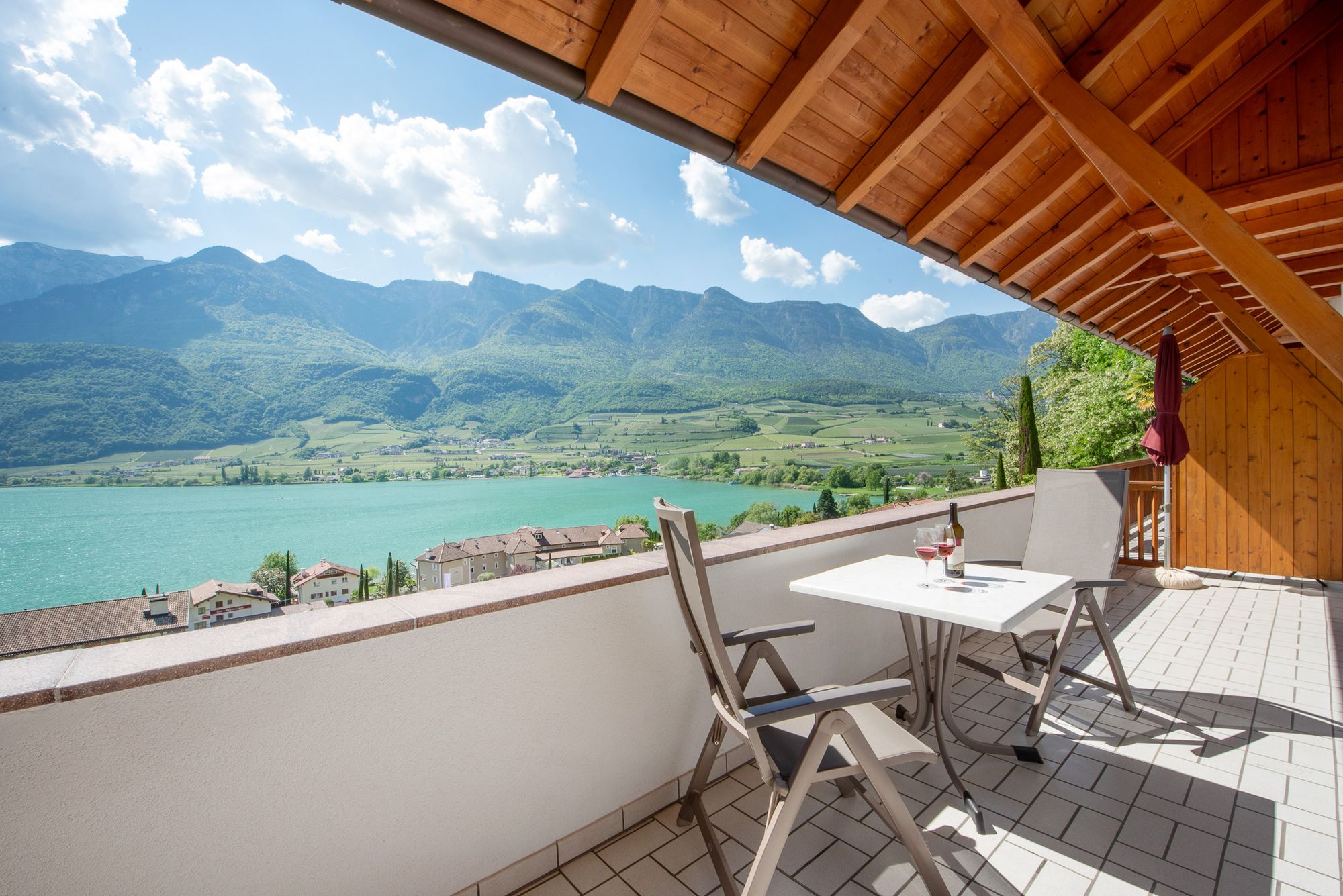 Von der angenehmen Loggia aus ist wohl der einmalige Blick auf den See nicht zu übersehen und die Höhenburg Laimburg als Ruine nicht weit weg zu erkunden.